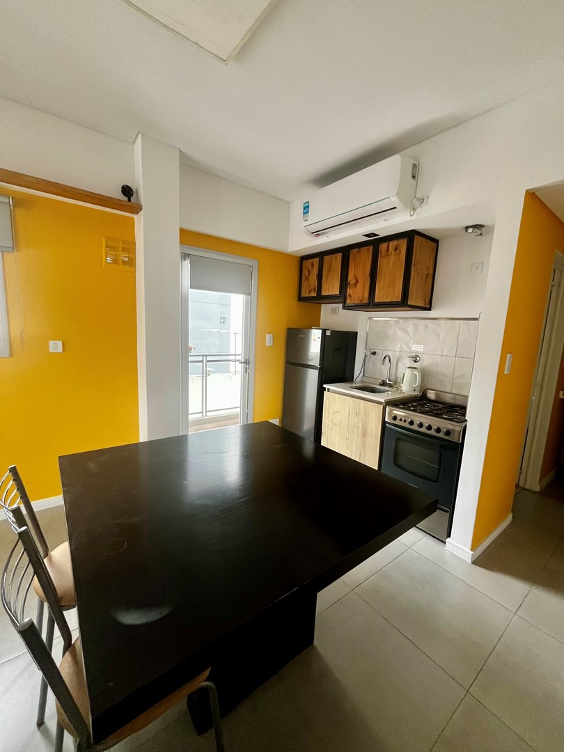 Alquiler de excelente departamento Monoambiente amueblado, luminoso, con todas las comodidades, aire acondicionado frío / calor, caldera individual, heladera, cocina de acero inoxidable, plasma, cortinas black out nuevas, ventilación cruzada, no cuenta con vajilla, tiene dos balcones, uno al frente y el otro lateral, el edificio además posee sum y pequeña piscina, listo para tu nuevo comienzo de vida o proyecto de trabajo